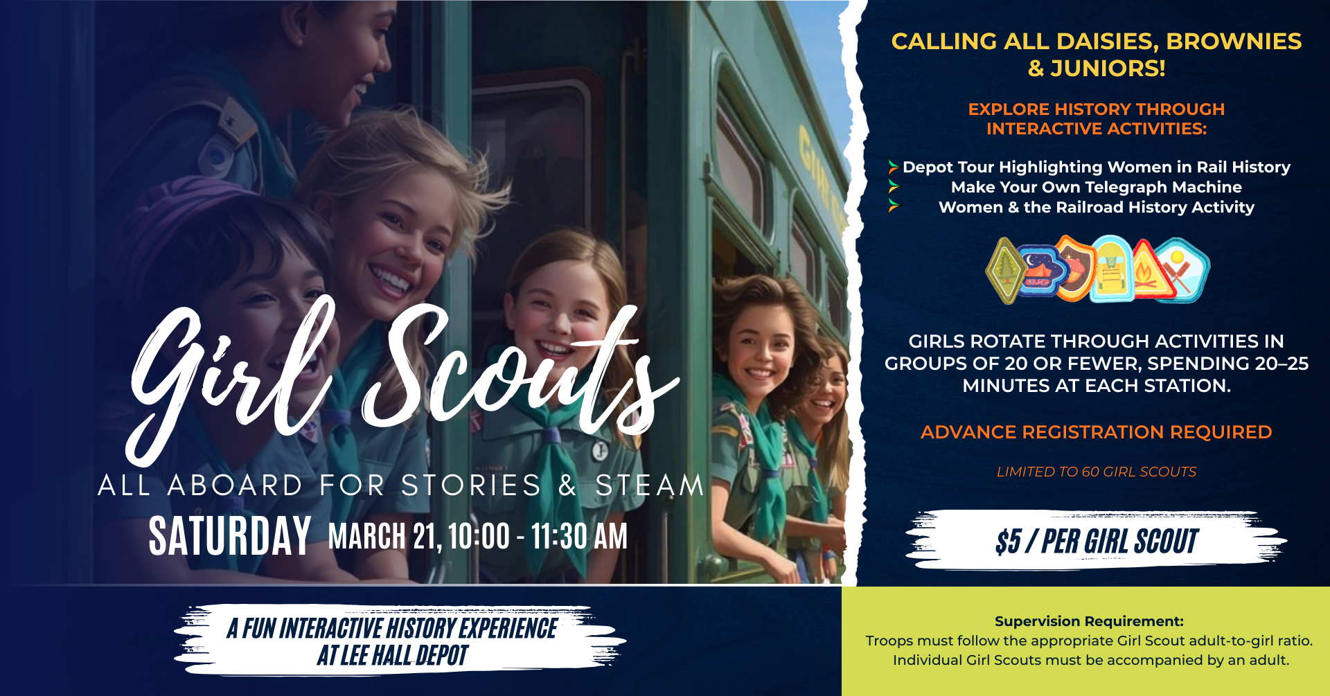 All aboard! Girl Scouts are invited to step back in time at the historic Lee Hall Depot for an exciting, hands-on STEAM adventure that blends creativity, discovery, and local history.